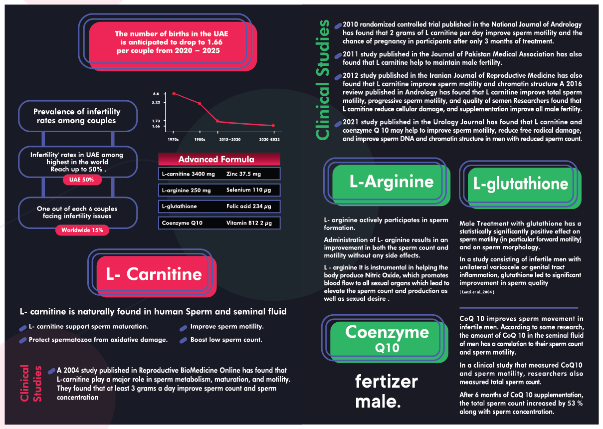 - L-Carnitine: Enhances sperm maturation, motility, and count.